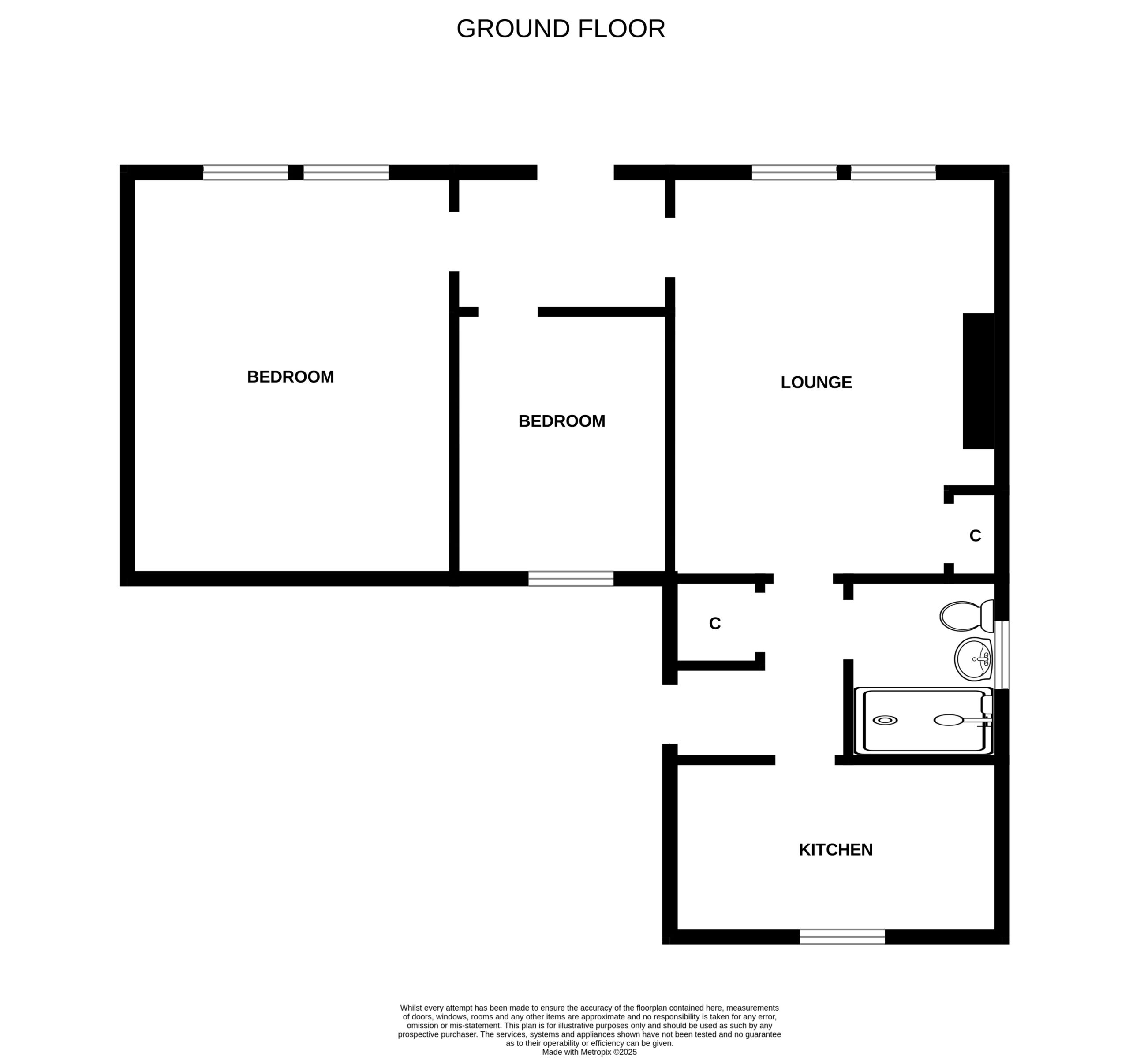 Accommodation comprises: Entrance hall, Spacious, bright lounge, offering comfortable living space, fire surround with gas fire and storage cupboard, inner hallway with access to shower-room and kitchen. The kitchen is fitted with wall and base mounted units, electric cooker and fridge freezer. Attached utility room. The shower-room is fitted with two piece suite and separate shower cubicle housing electric shower. Two spacious double bedrooms, one benefitting from shelved storage cupboard. The second bedroom can also be utilised as a dining room.