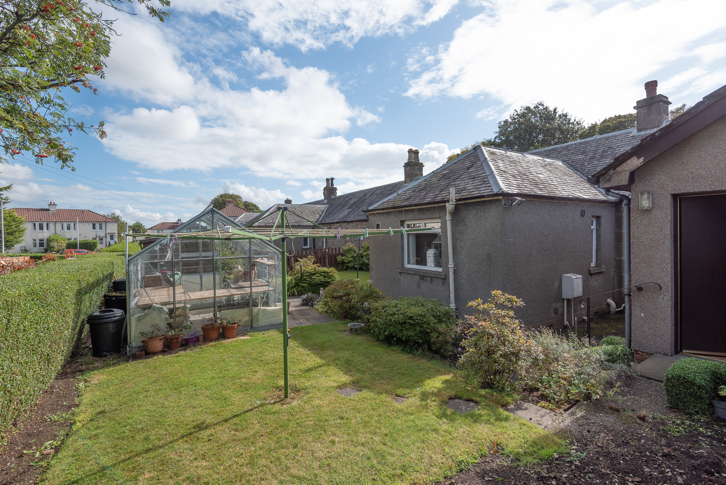 Floor coverings, light fittings, window fitments. White goods (no warranties are given). Greenhouse and garden shed.