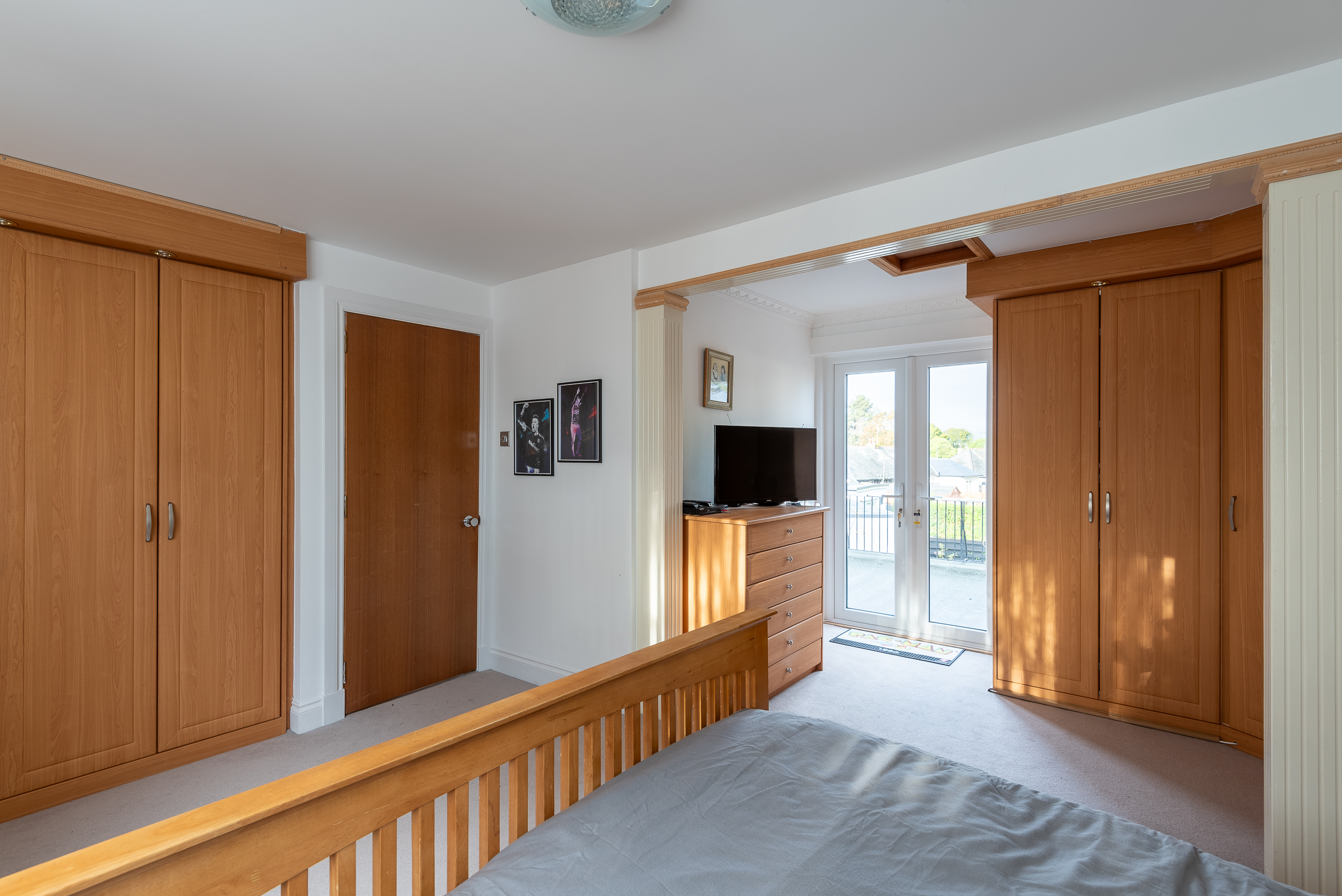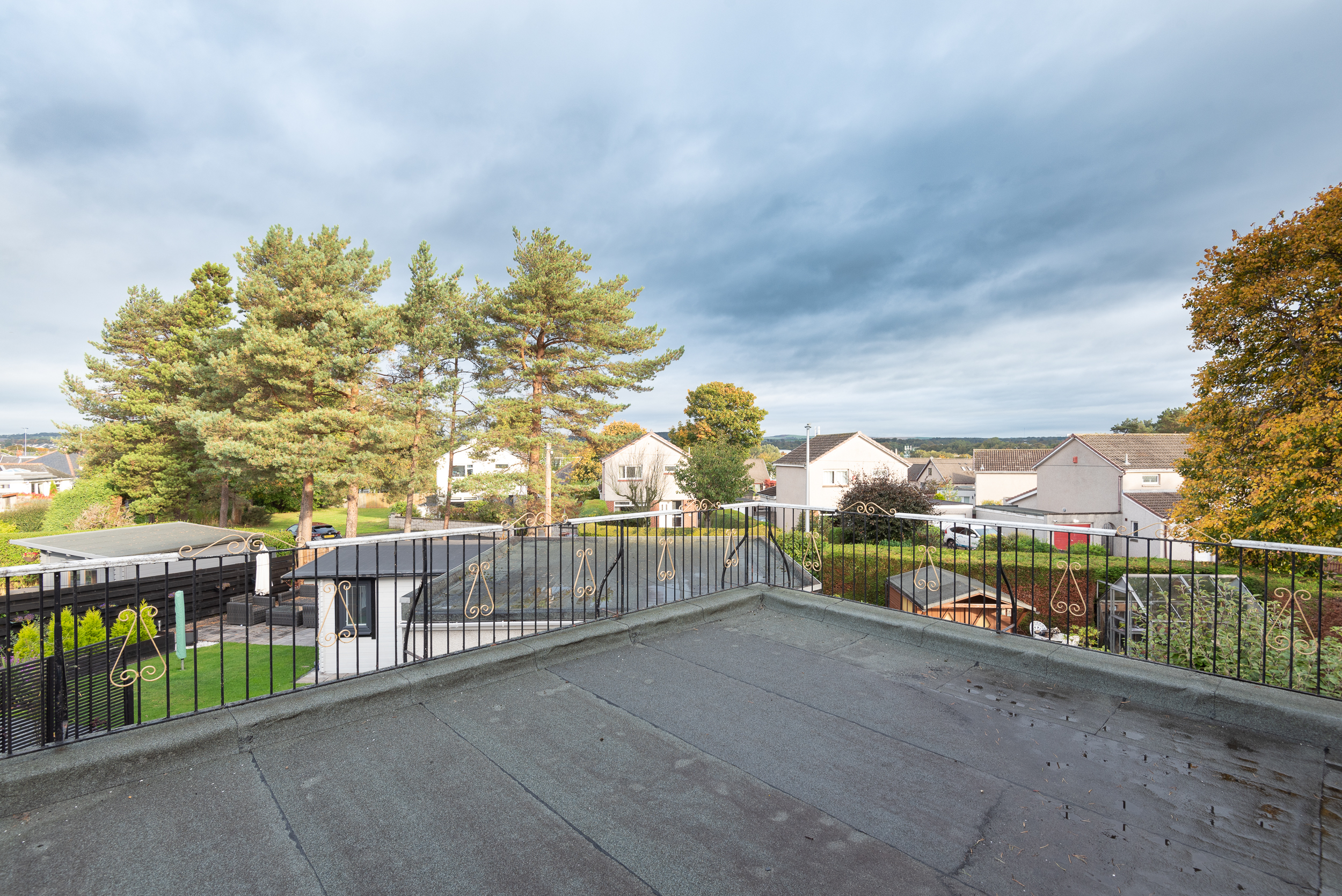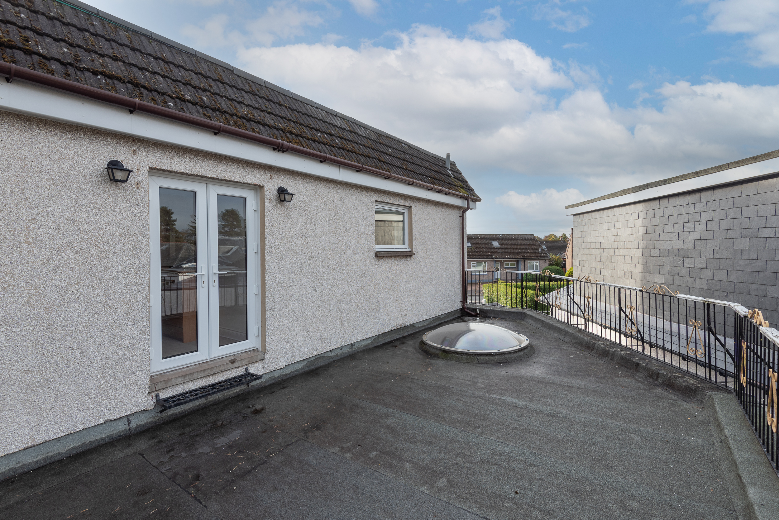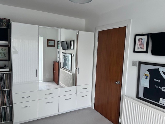 On the upper floor, there are two further bedrooms and family bathroom. The master bedroom is exceptionally spacious with a range of fitted wardrobes and patio doors leading out to the flat roof area. The second bedroom is a good sized double bedroom, also with fitted wardrobe. The family bathroom is fitted with a three piece white suite.
