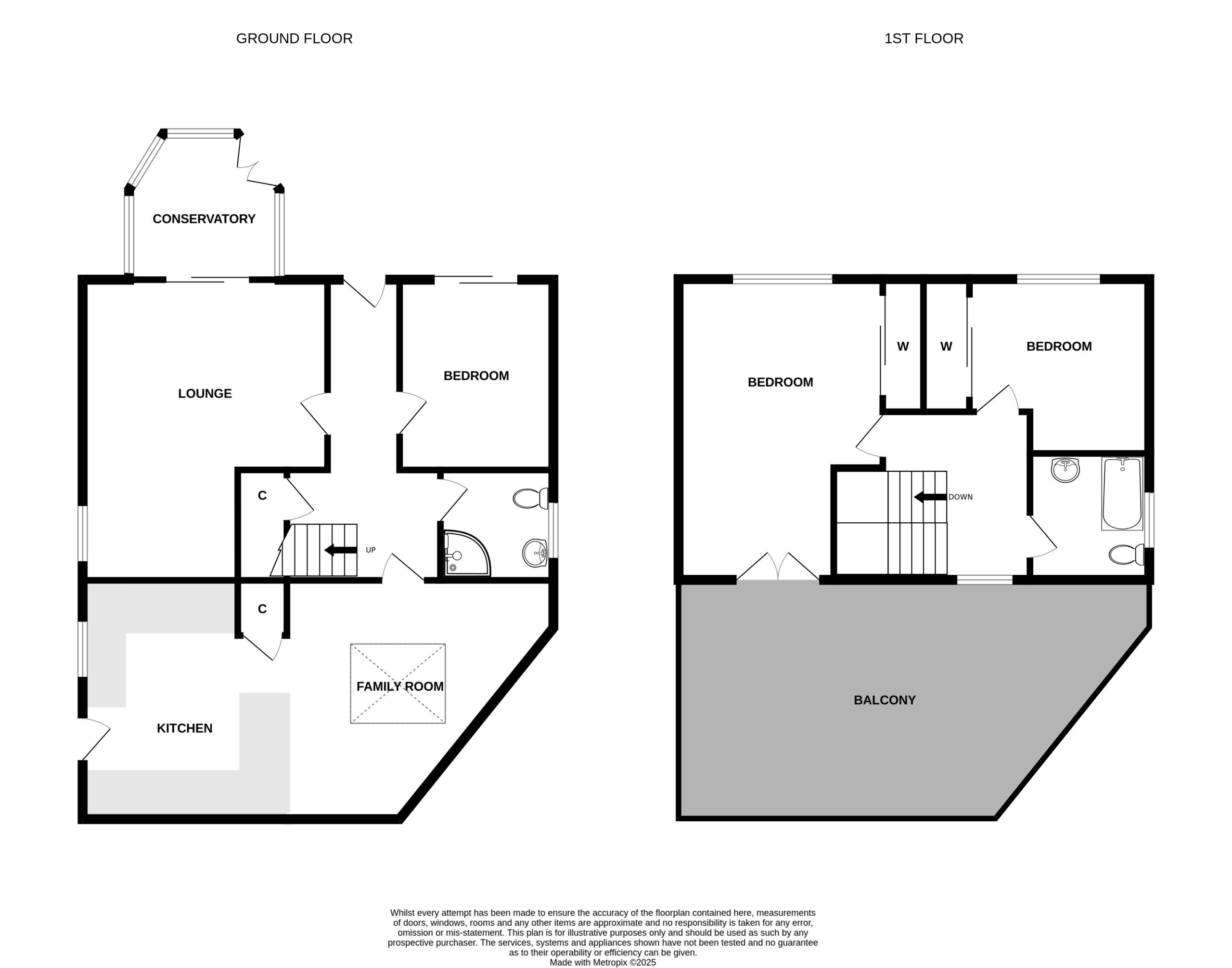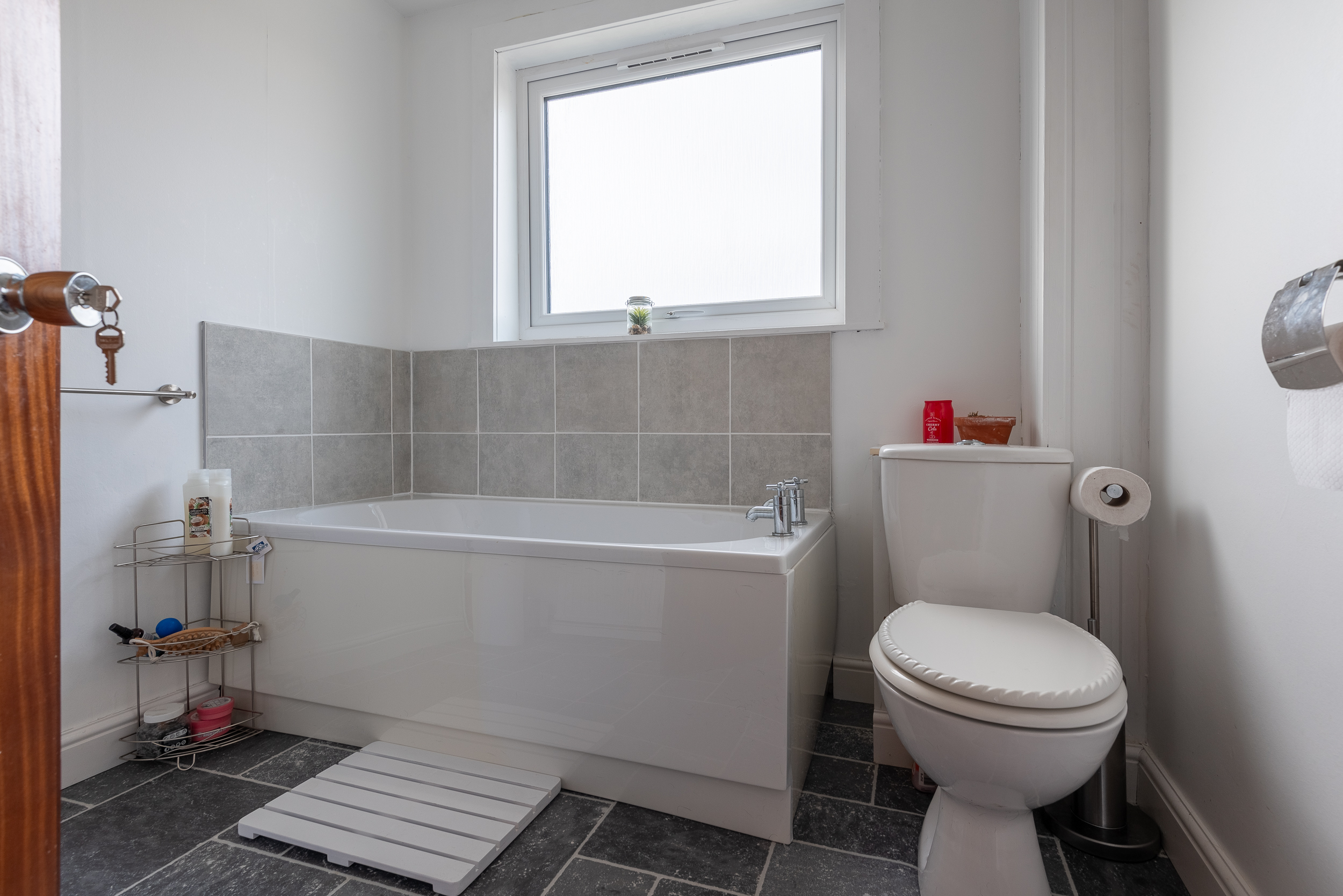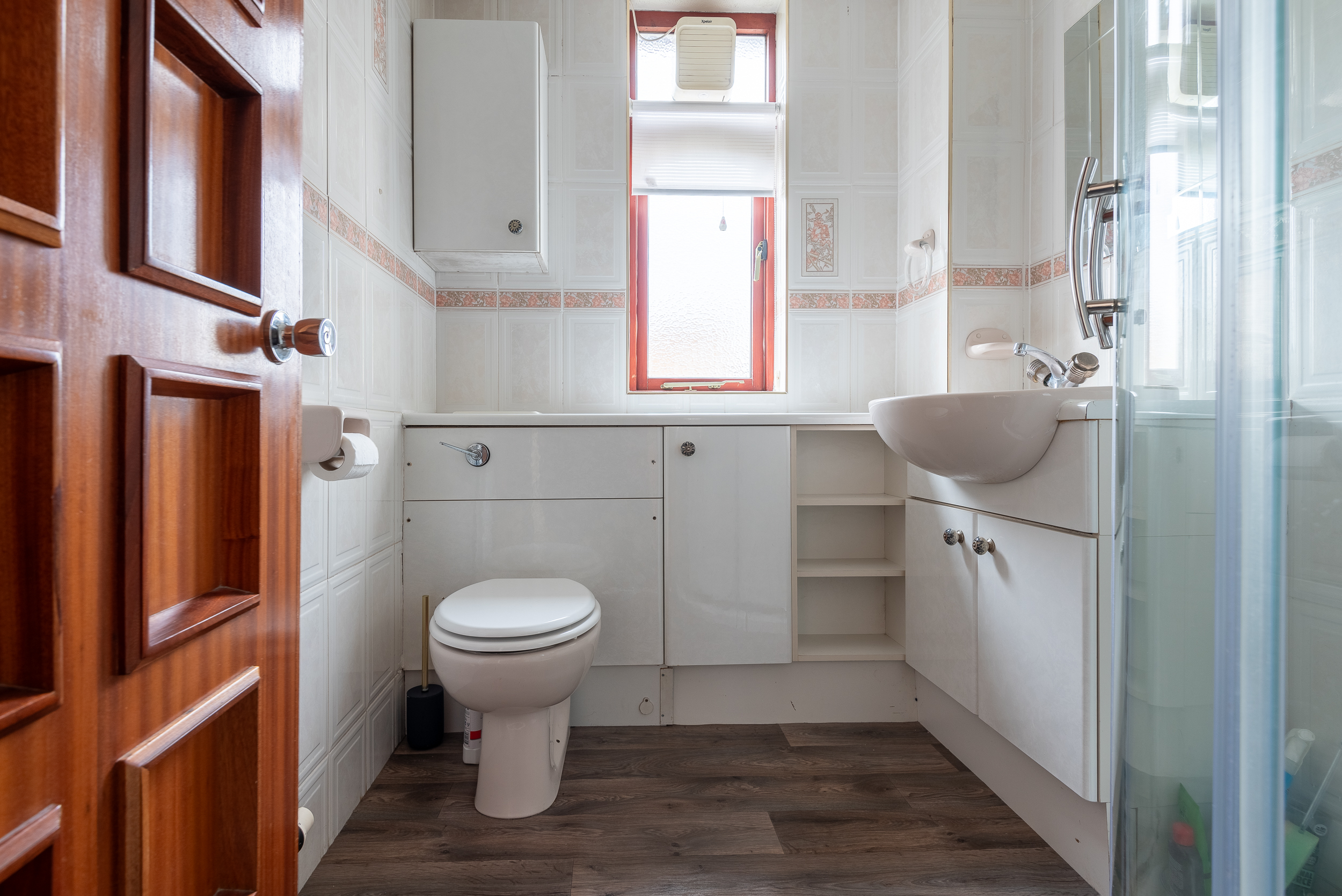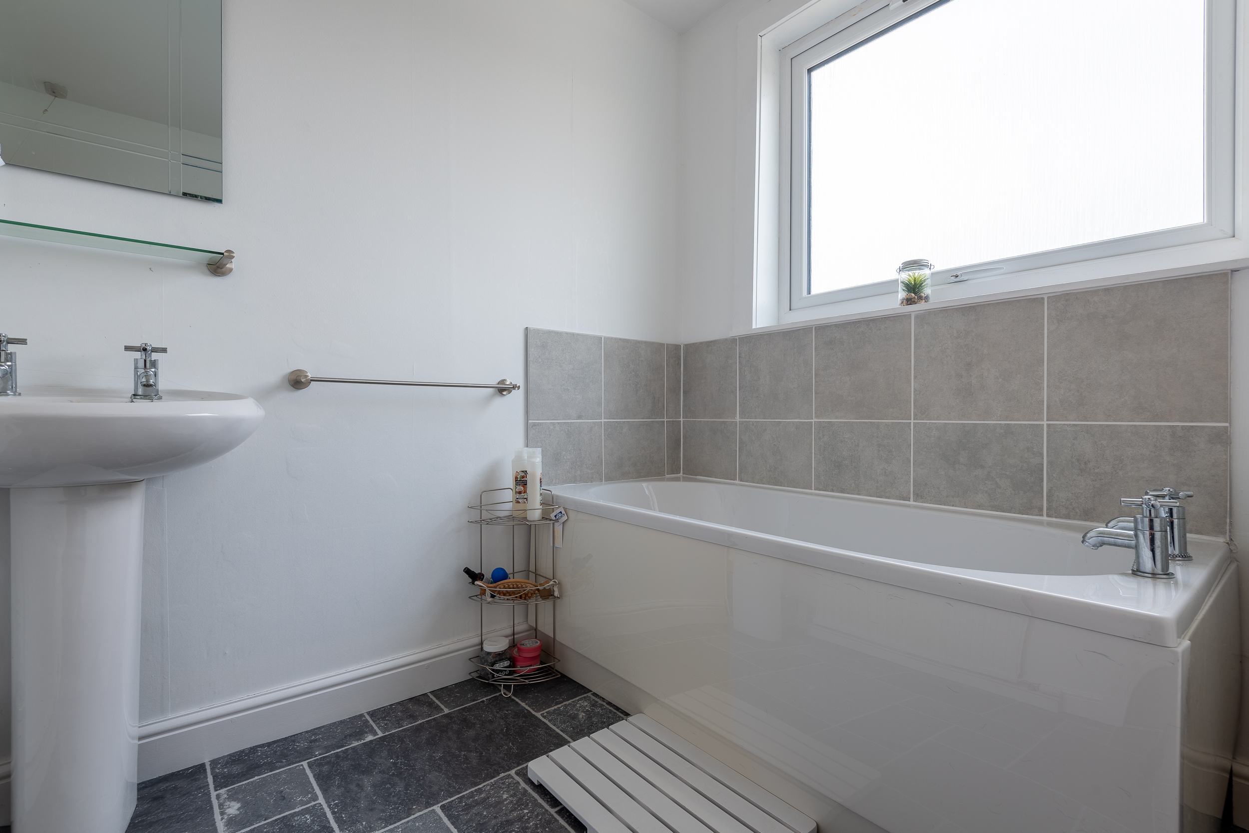 On the upper floor, there are two further bedrooms and family bathroom. The master bedroom is exceptionally spacious with a range of fitted wardrobes and patio doors leading out to the flat roof area. The second bedroom is a good sized double bedroom, also with fitted wardrobe. The family bathroom is fitted with a three piece white suite.