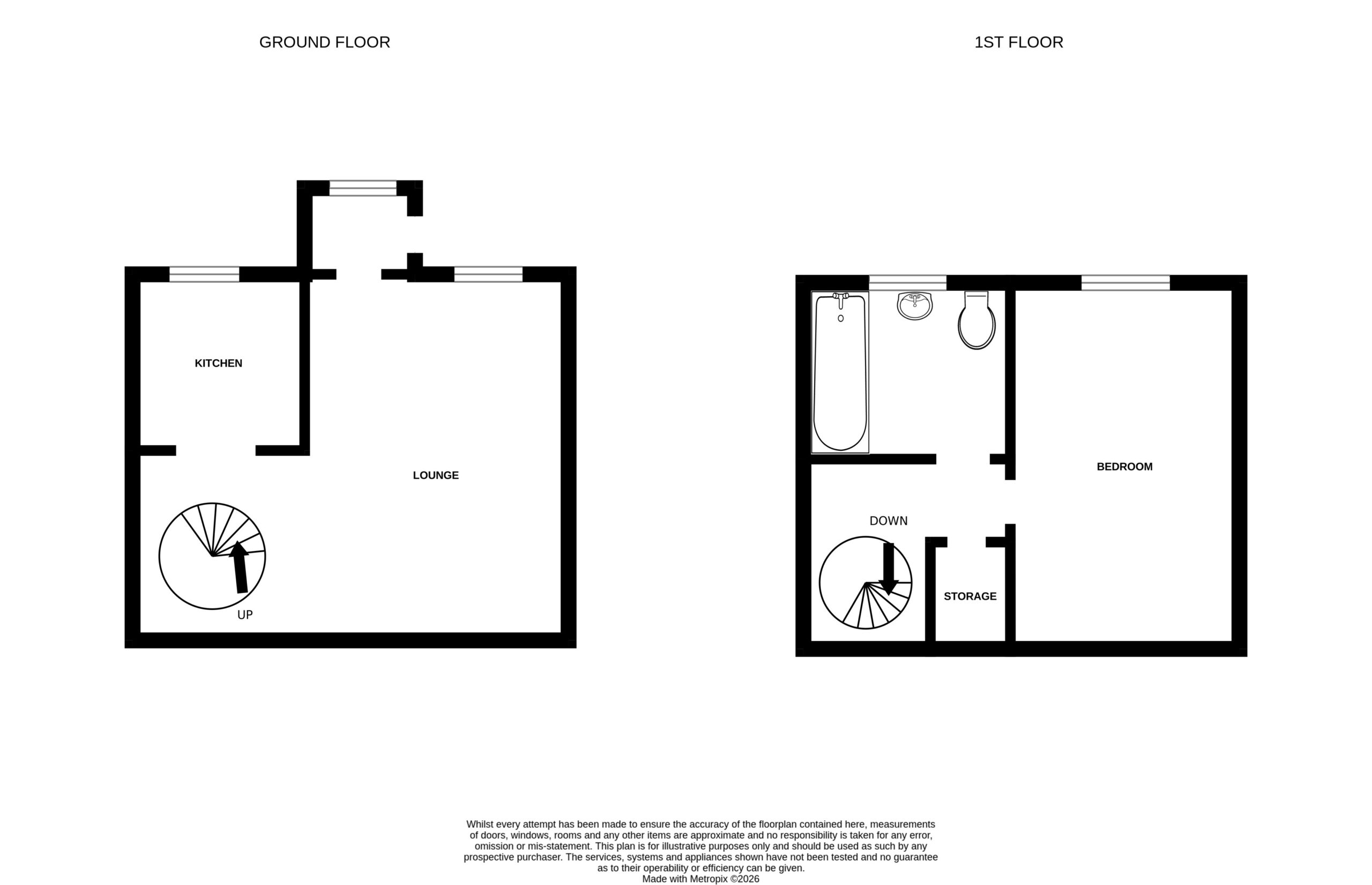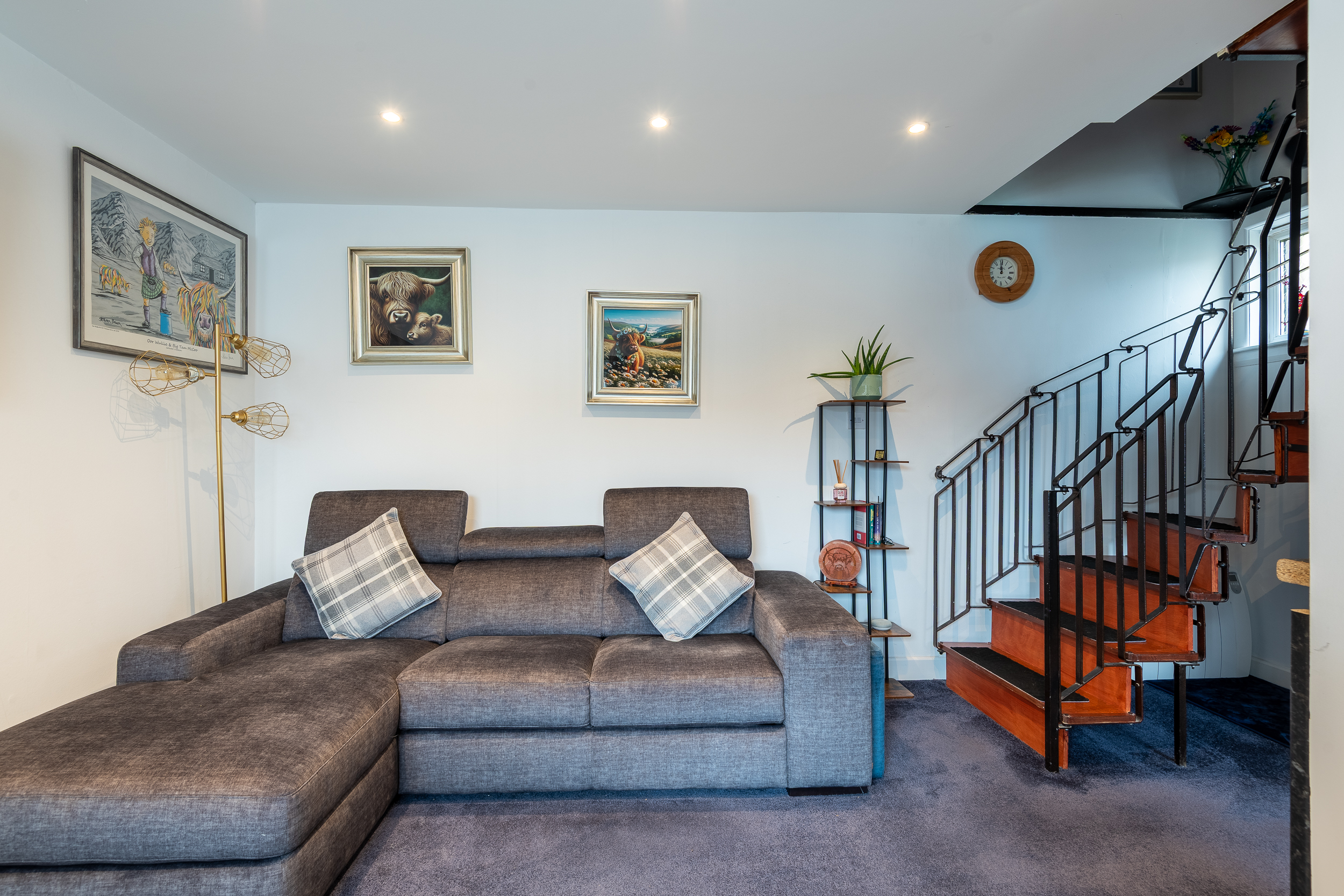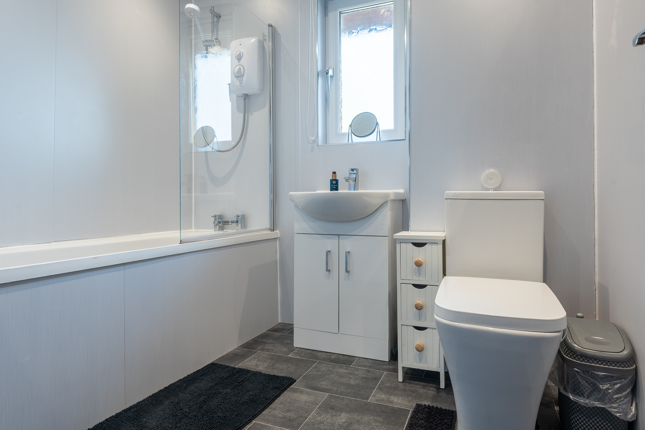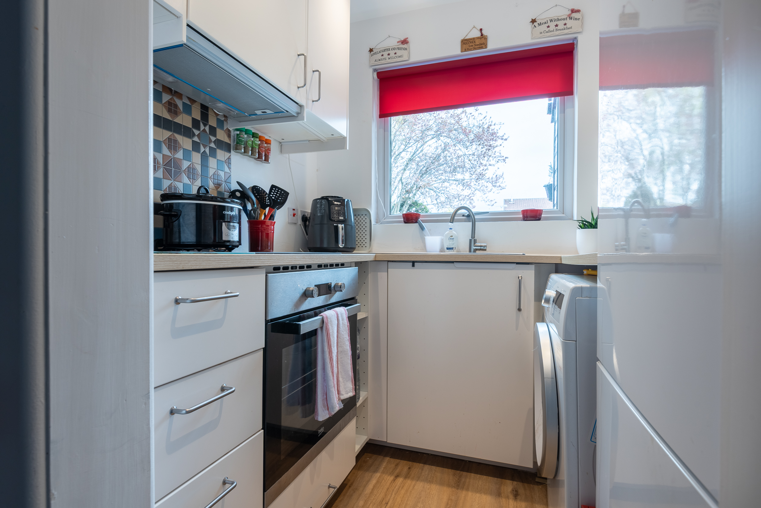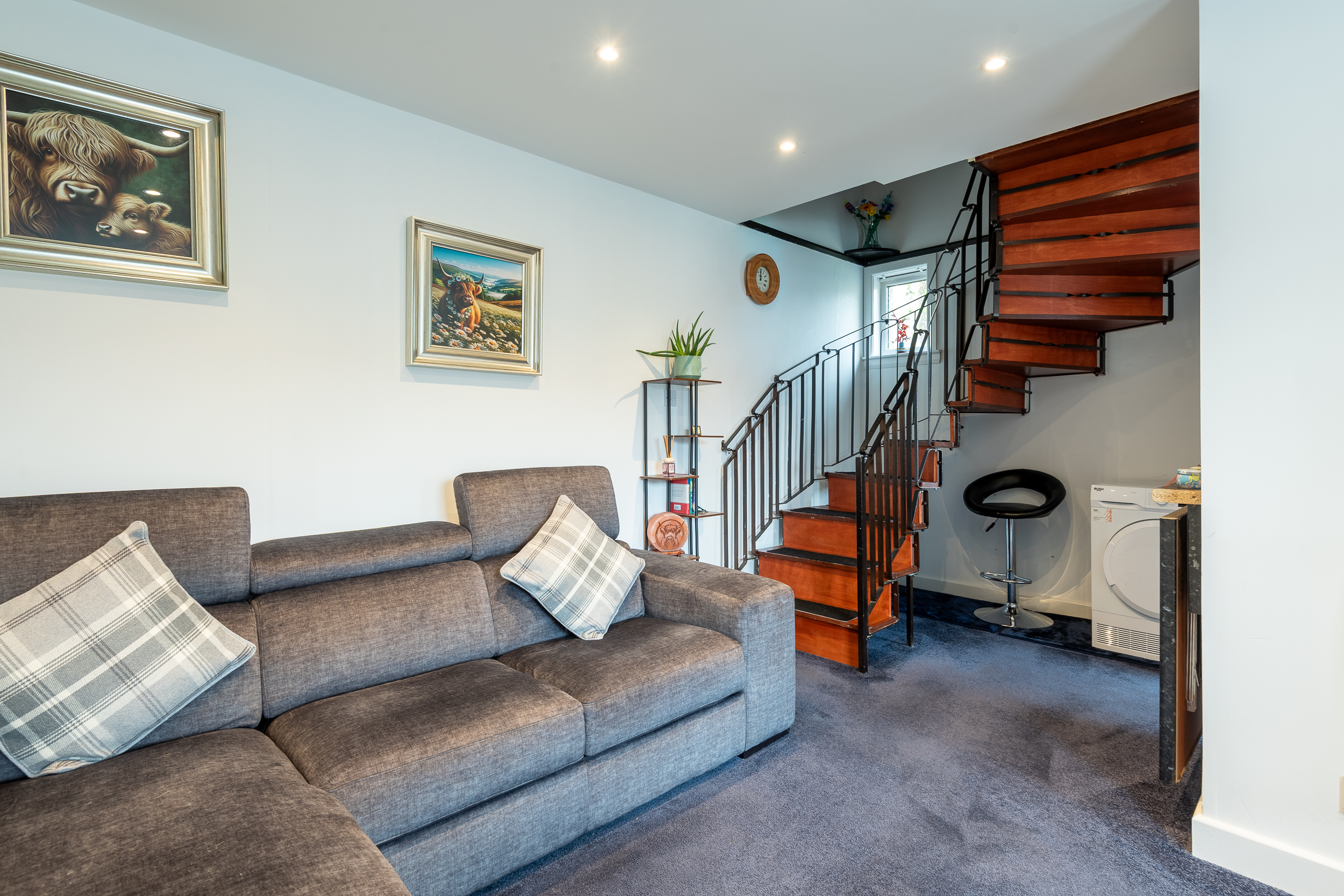 The accommodation is spread over two levels and comprises, entrance vestibule leading into lounge offering comfortable living space, within the lounge is a spiral staircase leading to the upper level. Modern kitchen with wall and base units, electric oven and hob and washing machine. Space for fridge freezer. On the upper level there is a storage cupboard within the hall. Double bedroom with fitted wardrobe and computer desk. The bathroom is modern and fitted with three piece white suite. Electric shower over the bath and glazed shower screen.