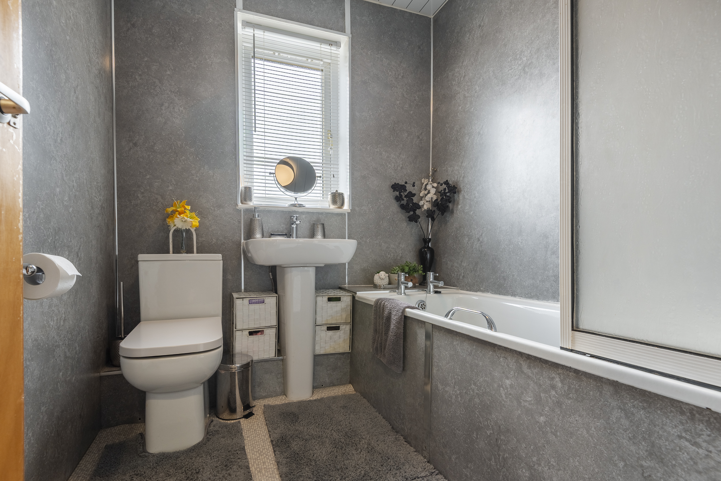 Outside areas are predominantly of a low maintenance design laid in paving slabs with a monoblocked section at the driveway. Boundaries comprise of timber fencing and concrete block walling with metal fencing above.