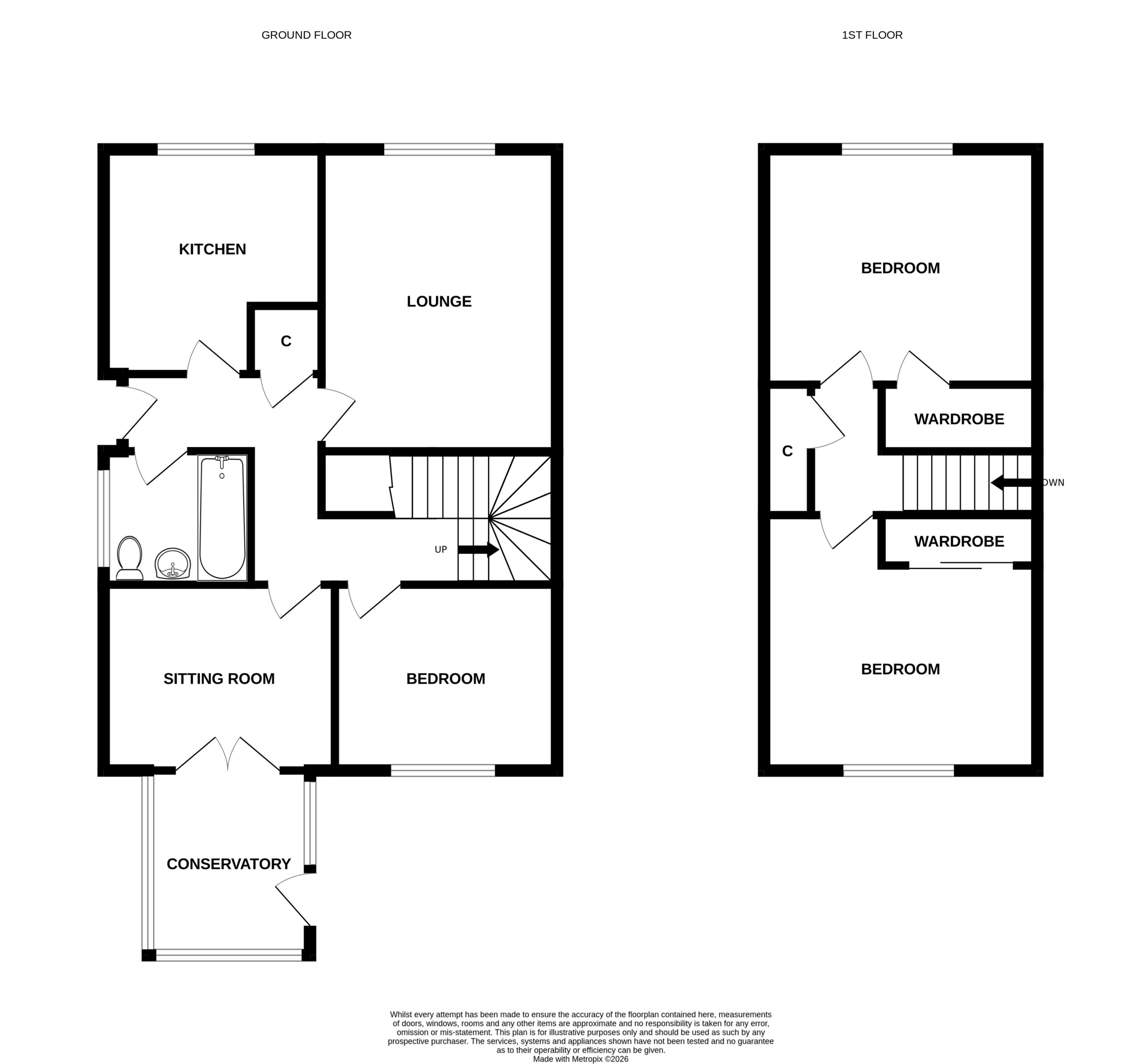 The property comprises, at ground floor level, Entrance Hall, Spacious lounge offering comfortable living space, fitted kitchen with ample wall and base mounted units, sitting room/dining room with French doors opening into the conservatory, double bedroom and bathroom with three piece white suit. On the upper level are two further good sized double bedrooms.