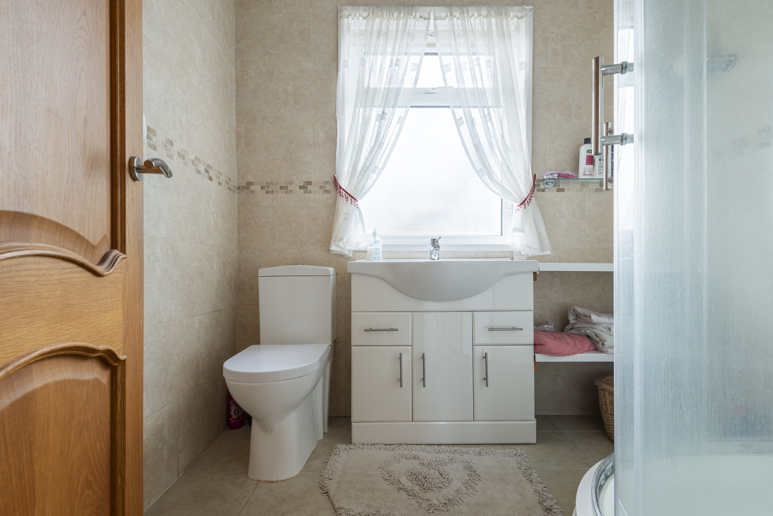 room is fitted with white WC and wash-hand basin, corner shower cubicle with mains shower. Access to the large floored attic is from the main hallway.