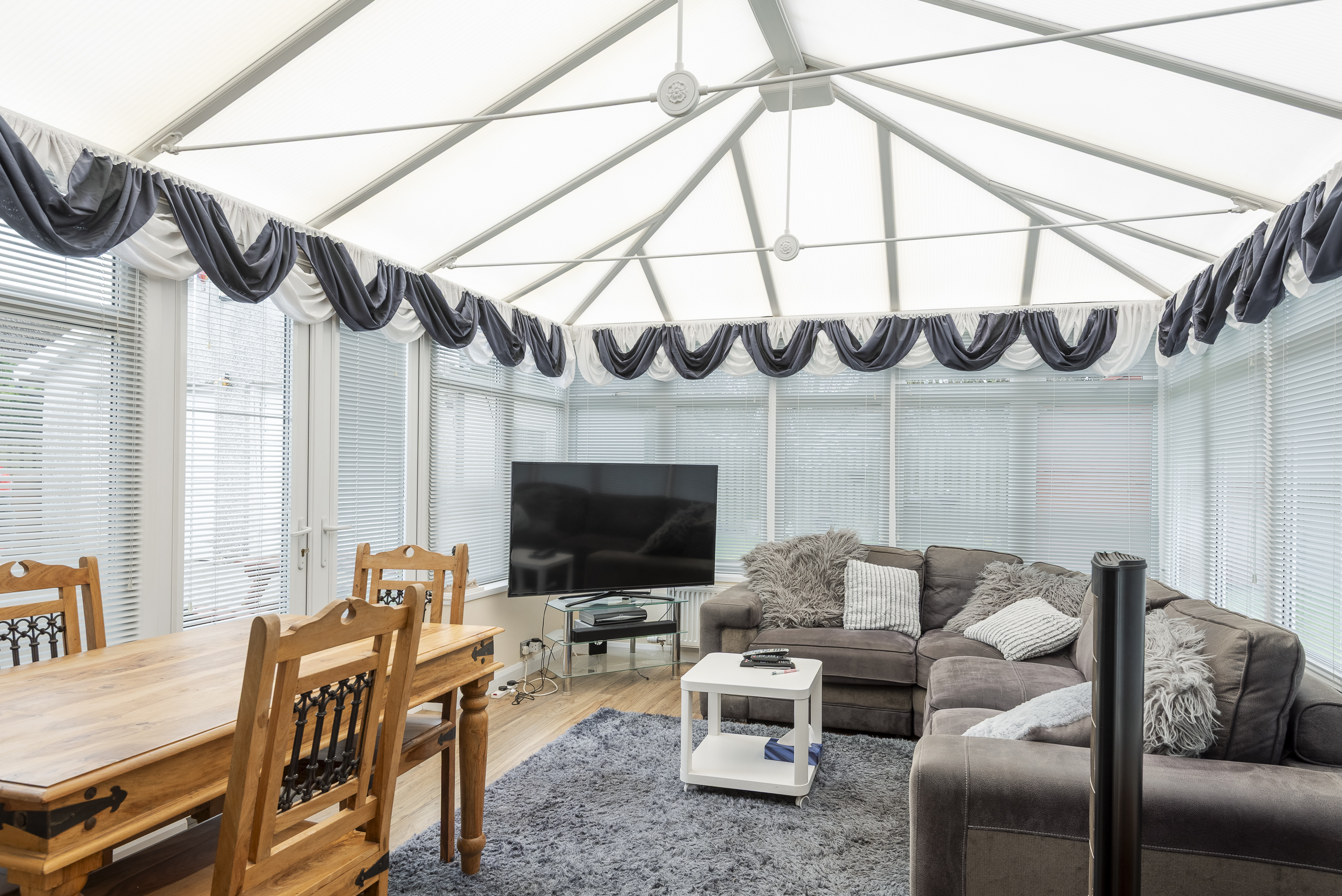 All carpets and floor coverings, window blinds where fitted, light fittings, bathroom fitments, gas range cooker, washing machine and integrated fridge freezer (no warranties are given)